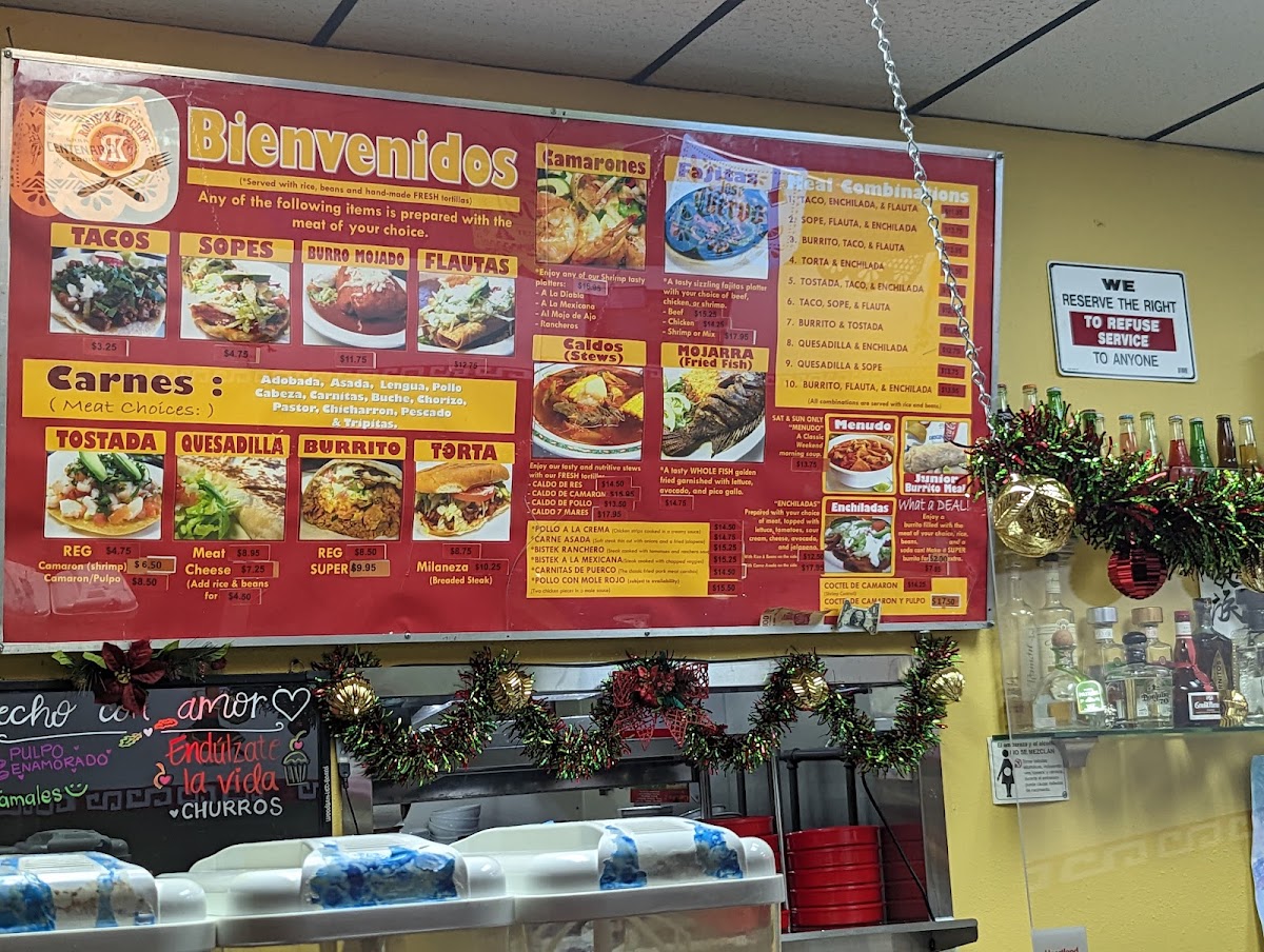 Rosie's Kitchen offers a straightforward menu focused on classic Mexican dishes served in a casual, welcoming setting. The selection leans heavily on comforting, hearty meals like chicken enchilada tostadas, tender carnitas, and flavorful burrito combinations—all made to satisfy both quick lunches and relaxed dinners. The menu also features family-style plates with options such as tacos, flautas, and sopes, often accompanied by rice and beans, making it easy to enjoy a well-rounded meal without fuss.